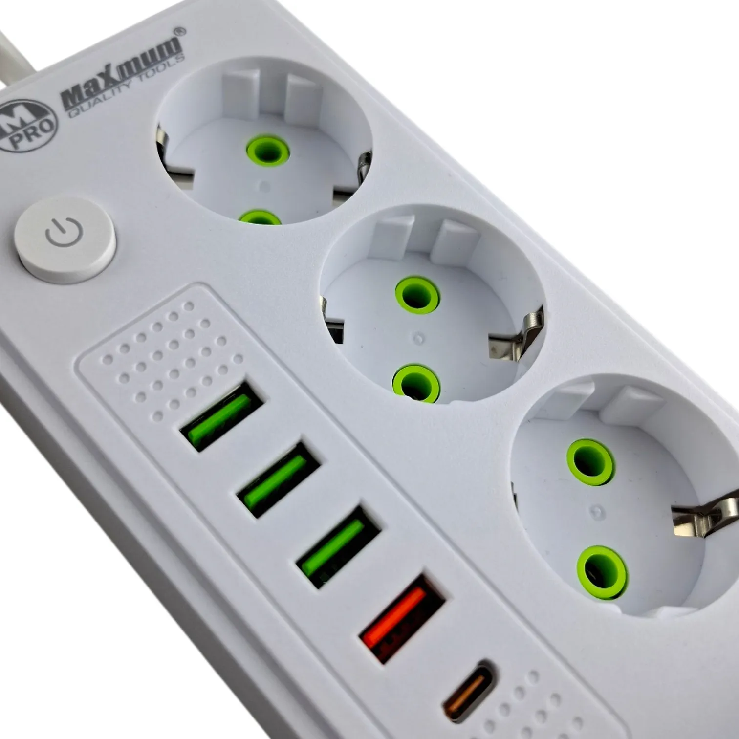 Удлинитель с заземлением 2 м, глубокий, 3 EURO розетки, 5 USB портов,Type C, U 314, "MAXIMUM" MX 147