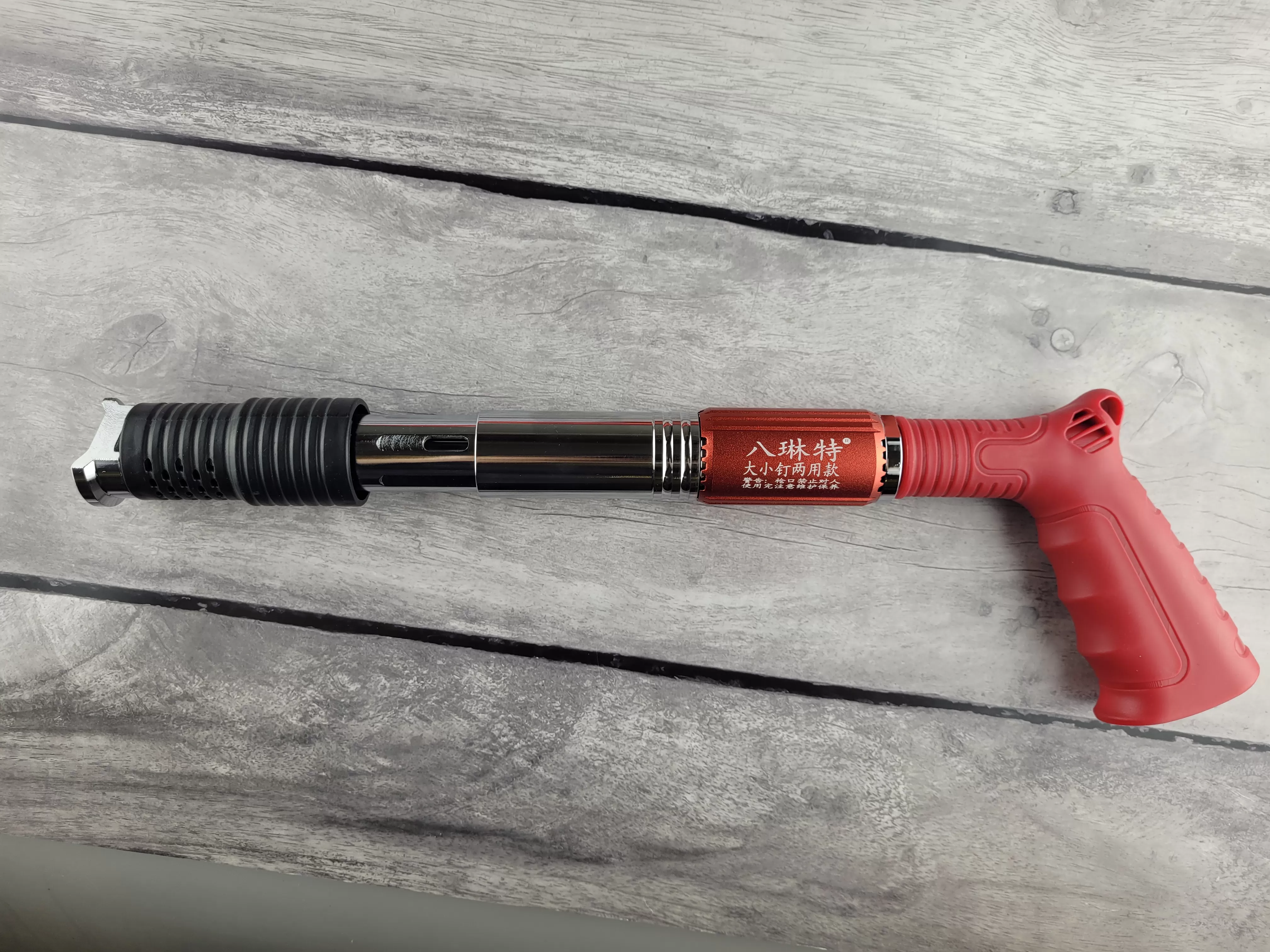 Легкий и компактный пороховой мини-пистолет длиной всего 40 см. без труда пробивает бетон, цемент, кирпич, металл и плотные деревянные панели.