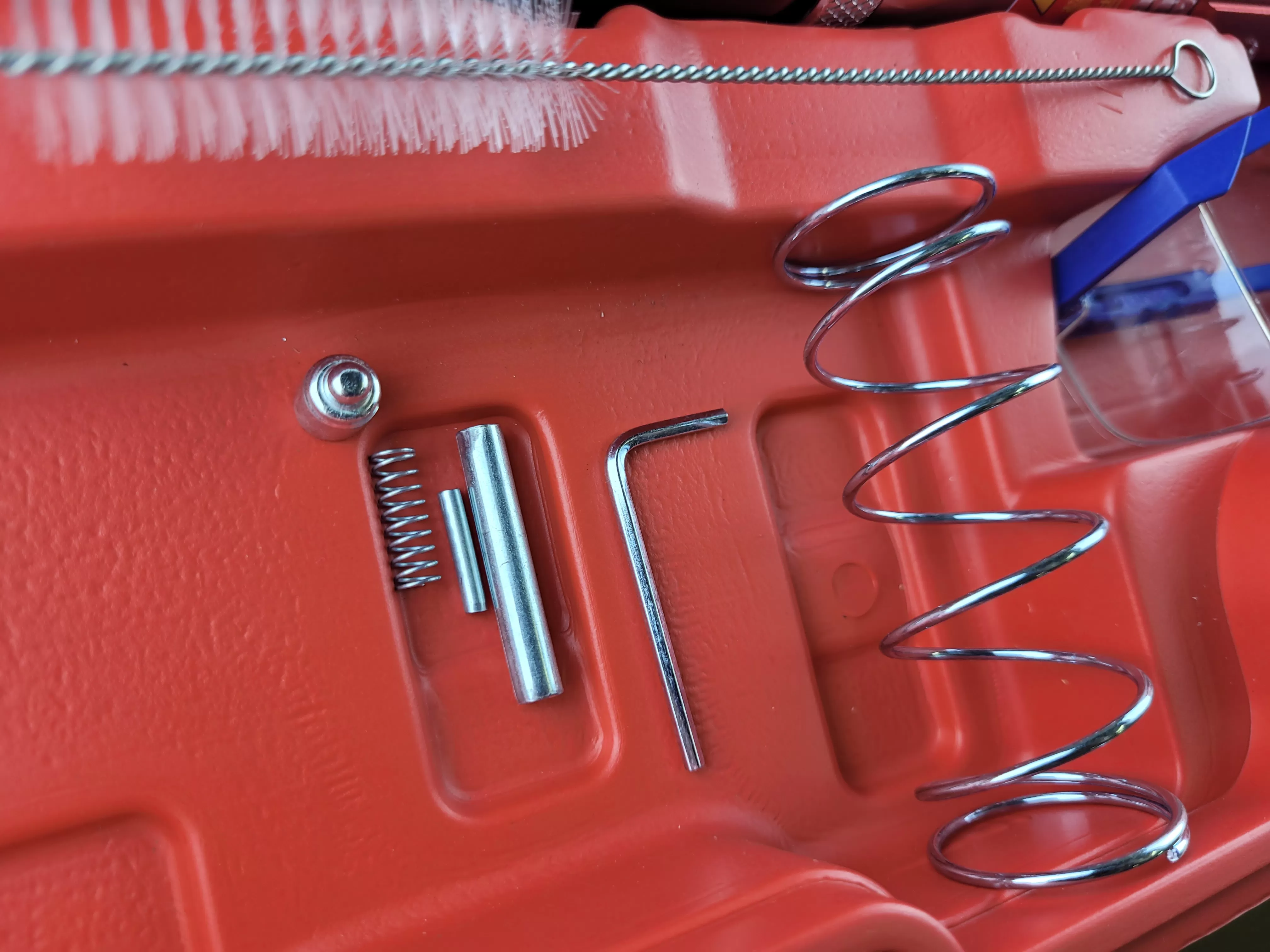 Пистолет использует пороховые заряды (патроны) разной мощности. Мощность обозначается цветом: