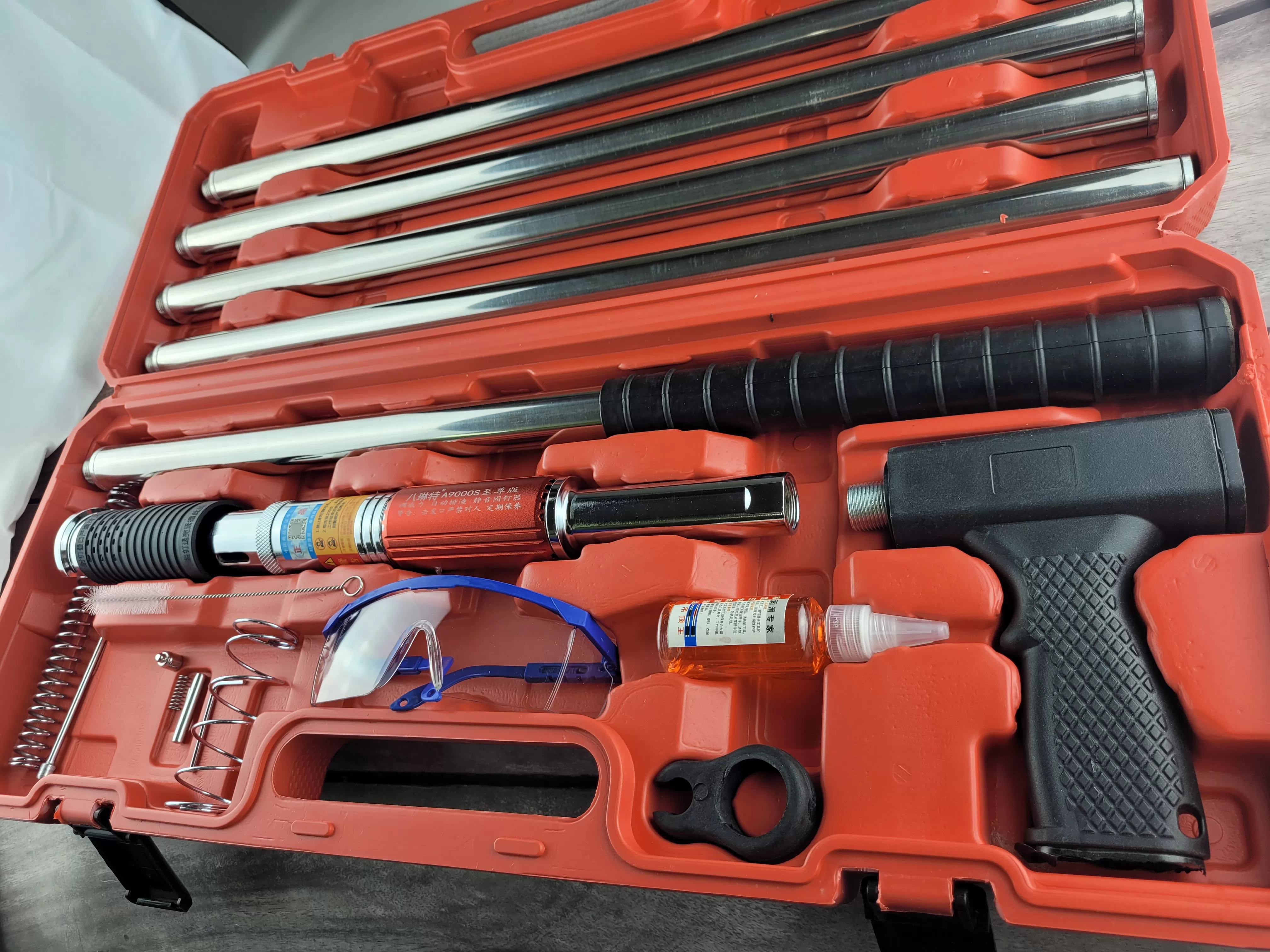 · Направляющая штанга: Помогает удерживать инструмент строго перпендикулярно поверхности, что критически важно для безопасности и качества крепления.