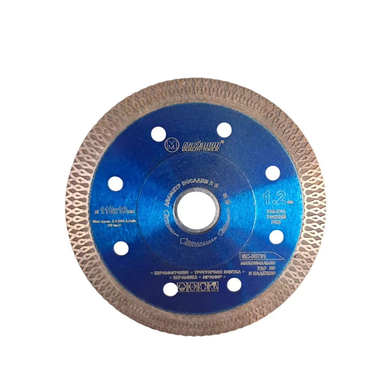 Алмазный диск Turbo 110 мм от "MAXIMUM Quality Tools" из серии PRO предназначен для резки бетона, кирпича, натурального и искусственного тонкого камня с помощью угловой шлифовальной машины.
